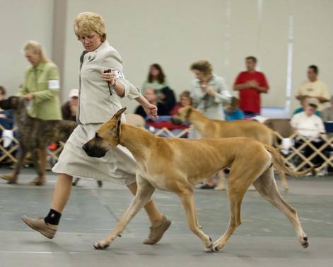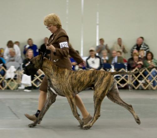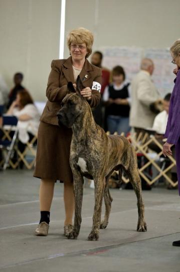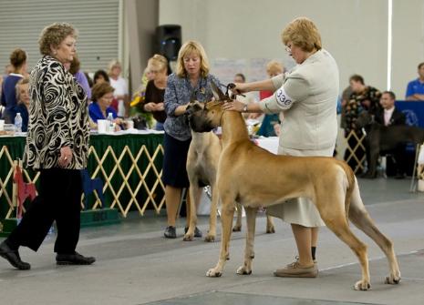 | 2009 GDCA National 1st place Stud Dog Class AM/Intl/Can Ch Jerdans Prince Of Vigo (Tyler) & His Get below. Owners: Chrissy MacMartin & Dr. Jose Ribo Tyler's Get: Ch Jerdans to Helen Back, "Helen" Ch Jerdans Gone With The Wind, "Scarlett" Danemarks Princess Cameo RN, "Cameo" Ch Von Charm's Return Of The King CGC, "ARAGORN" Picture by: Jennifer Suddarth |